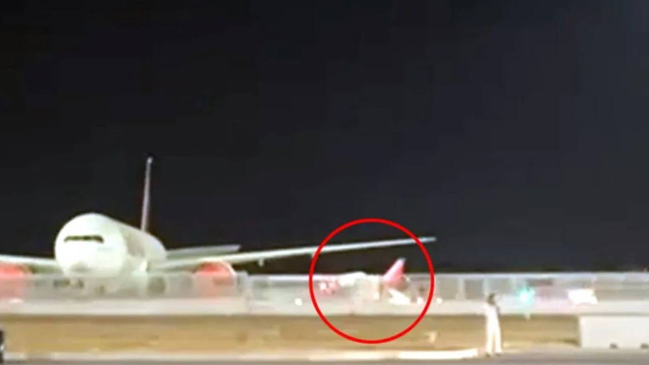 Takımların konumlandırılması ölçümleri harekete geçirirken, uçak podyumda sorunsuz bir tekerlek koydu. Uçak park pozisyonunda alınırken bir soruşturma başlatıldı.