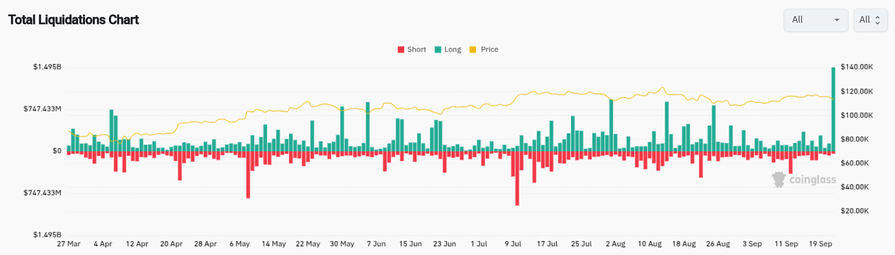 • Düşüş, yılın en büyük tasfiye etkinliği olan Crypt -Maruziyette 1 milyar doların üzerinde tasfiye edildi.