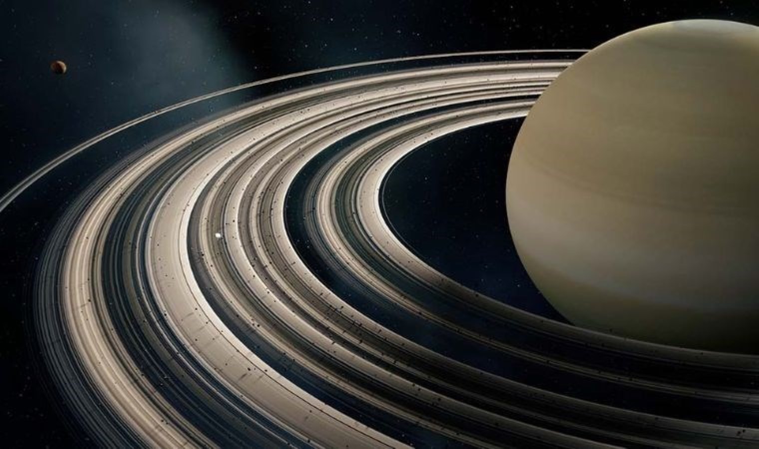 SatürnEtkileyici halkalar çoğunlukla buz, kaya ve toz parçalarından oluşuyor.